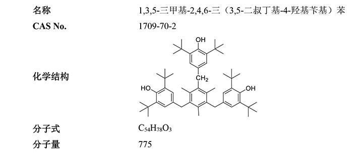 高分子受阻酚類(lèi)抗氧劑,與材料相容性好,耐水抽提性好。